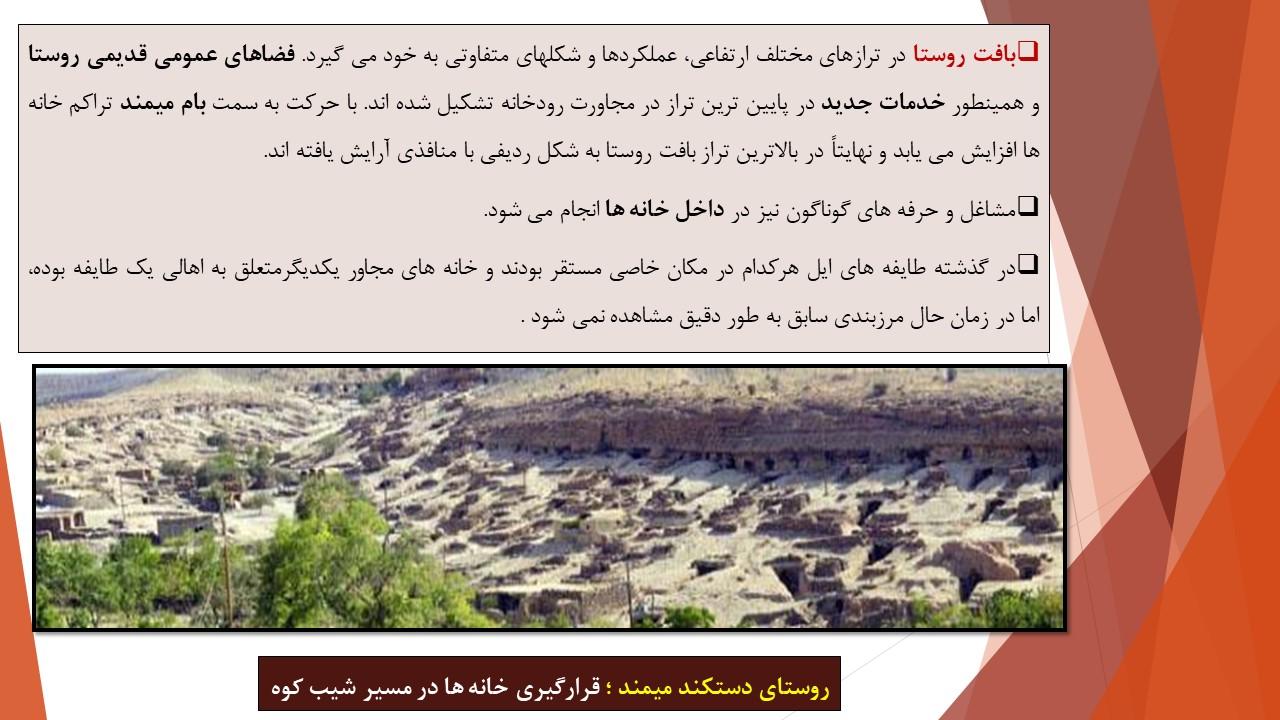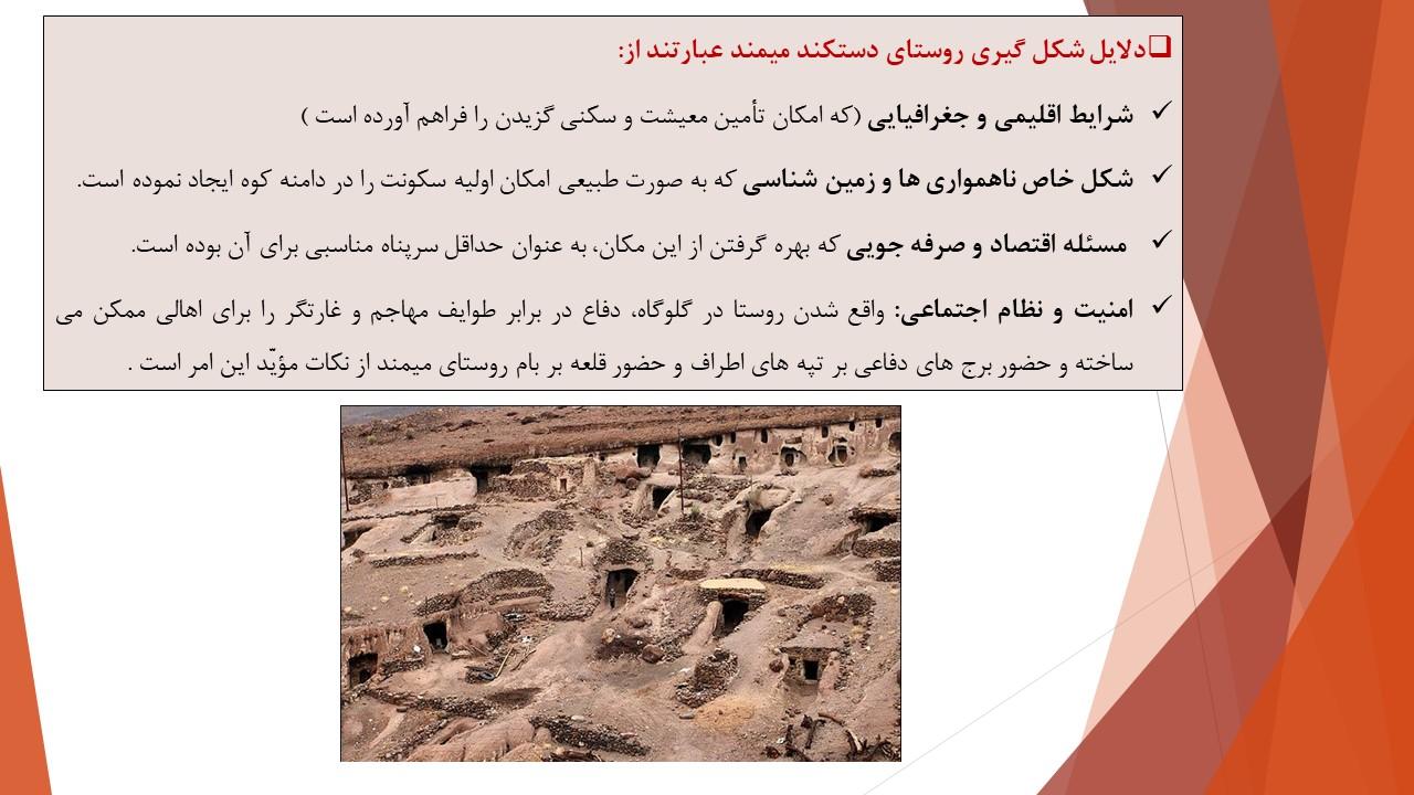 - روستای دستکند میمند ؛ قرارگیری خانه ها در مسیر شیب کوه