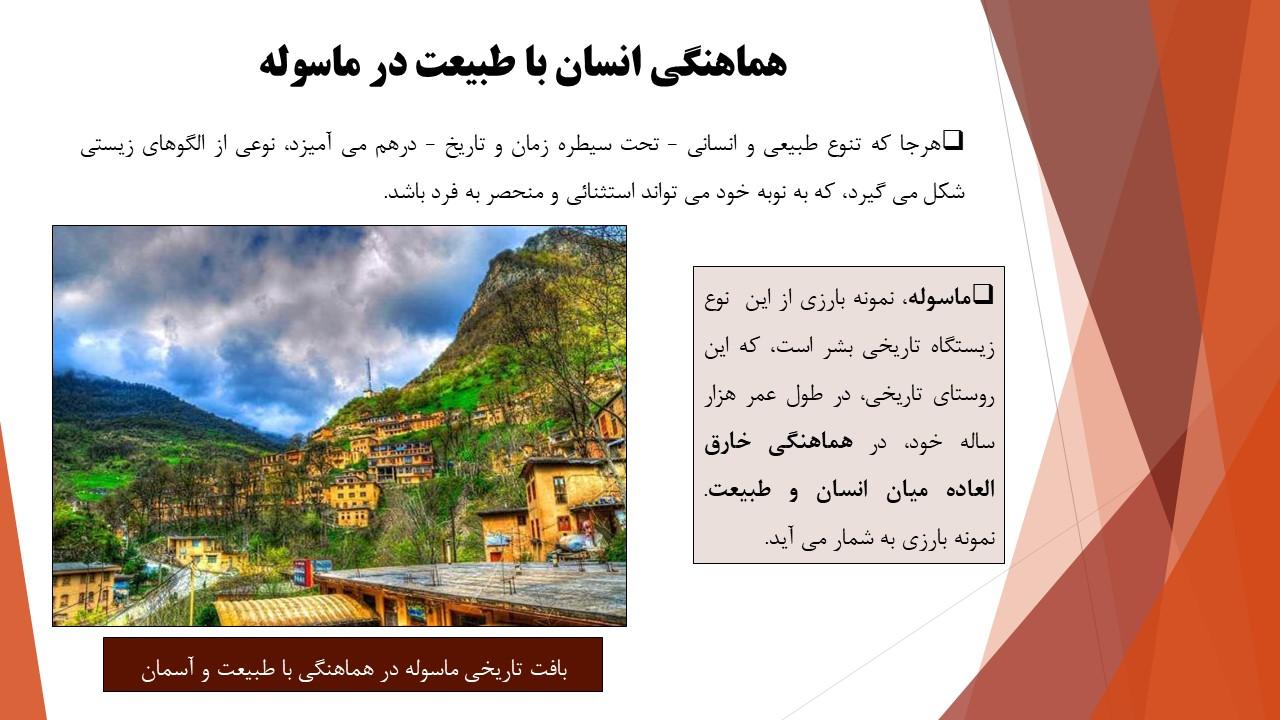 - معماری ماسوله در هماهنگی با شیب زمین ( اسد محله )