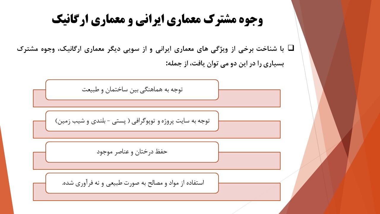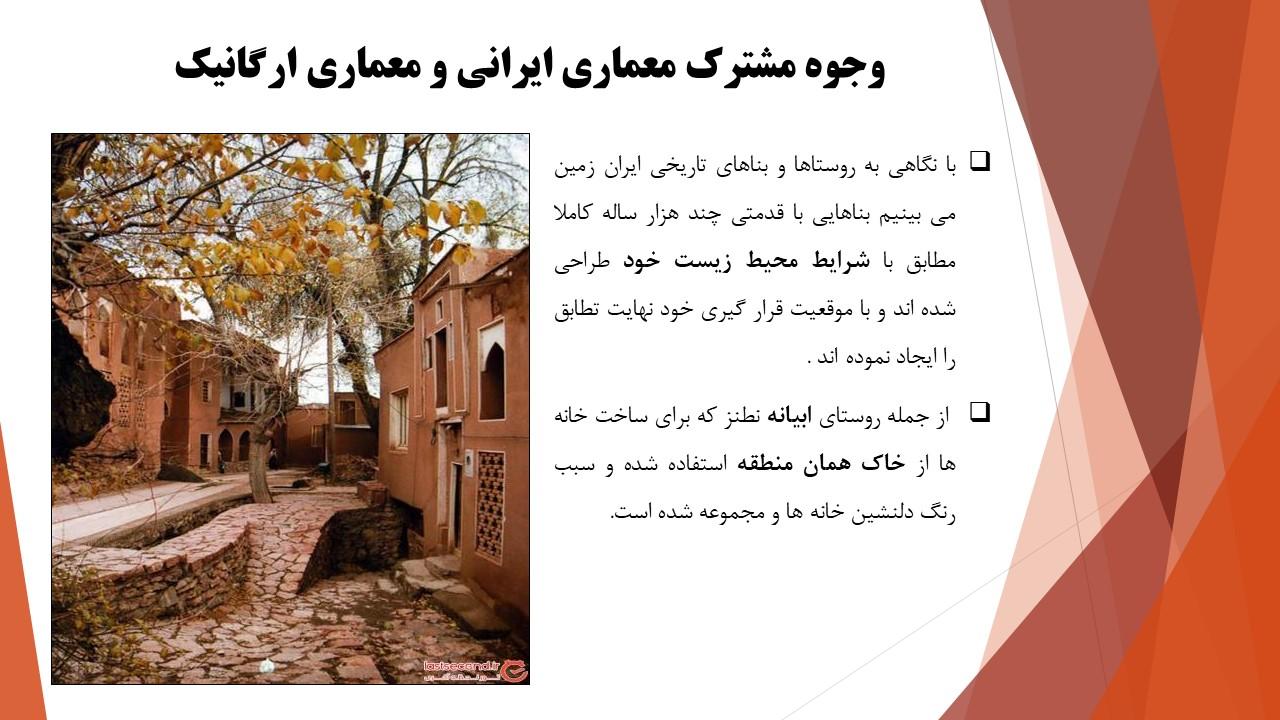 - وجوه مشترک معماری ایرانی و معماری ارگانیک
