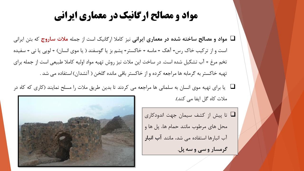 - مواد و مصالح ارگانیک در معماری ایرانی