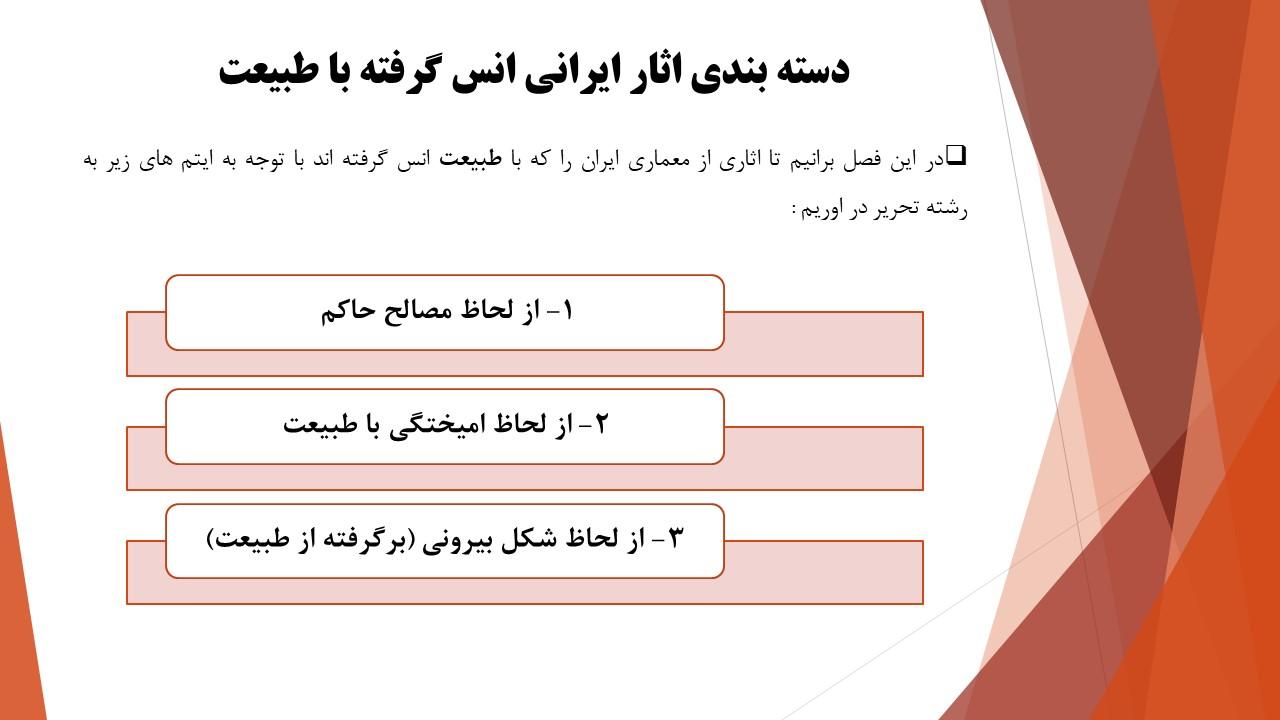 قسمت سوم : از لحاظ شکل بیرونی (برگرفته از طبیعت) یا سلسله مراتب
