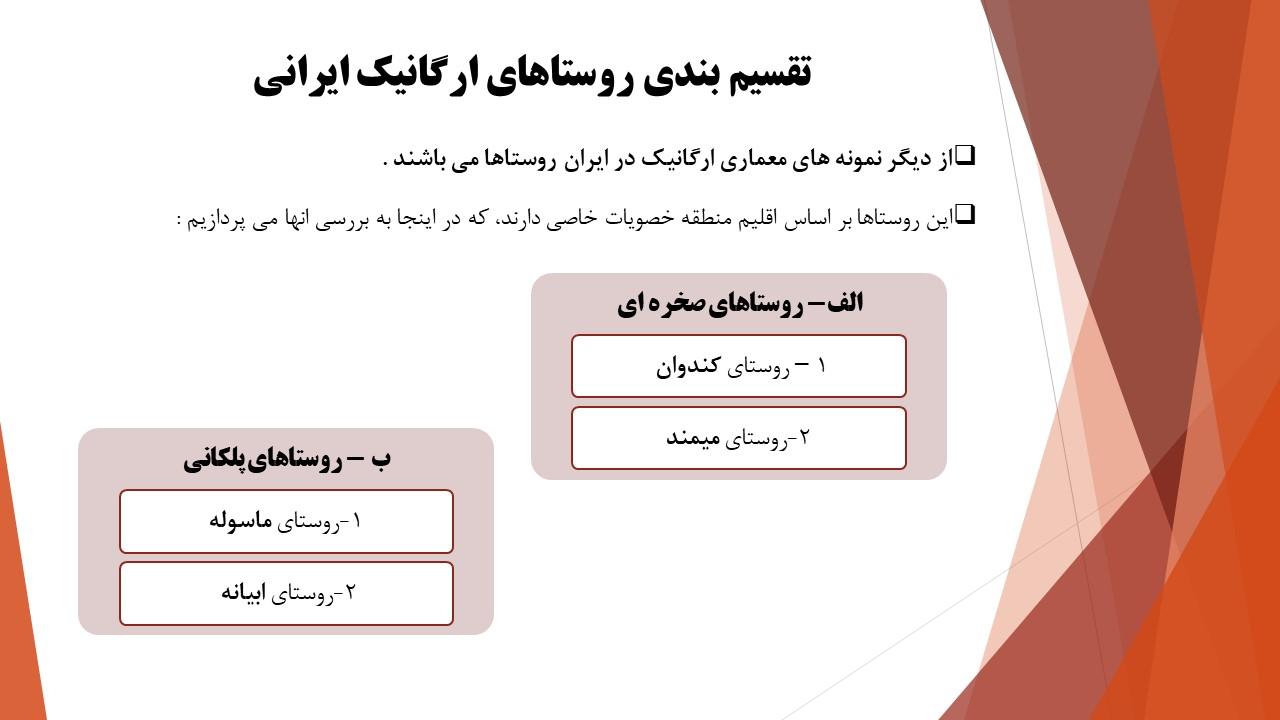 - تقسیم بندی روستاهای ارگانیک ایرانی