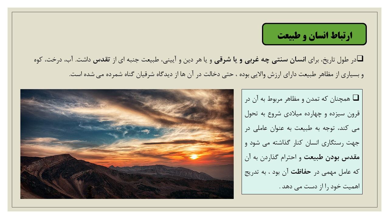- در یک تقسیم بندی کلی رابطه ی انسان با طبیعت :