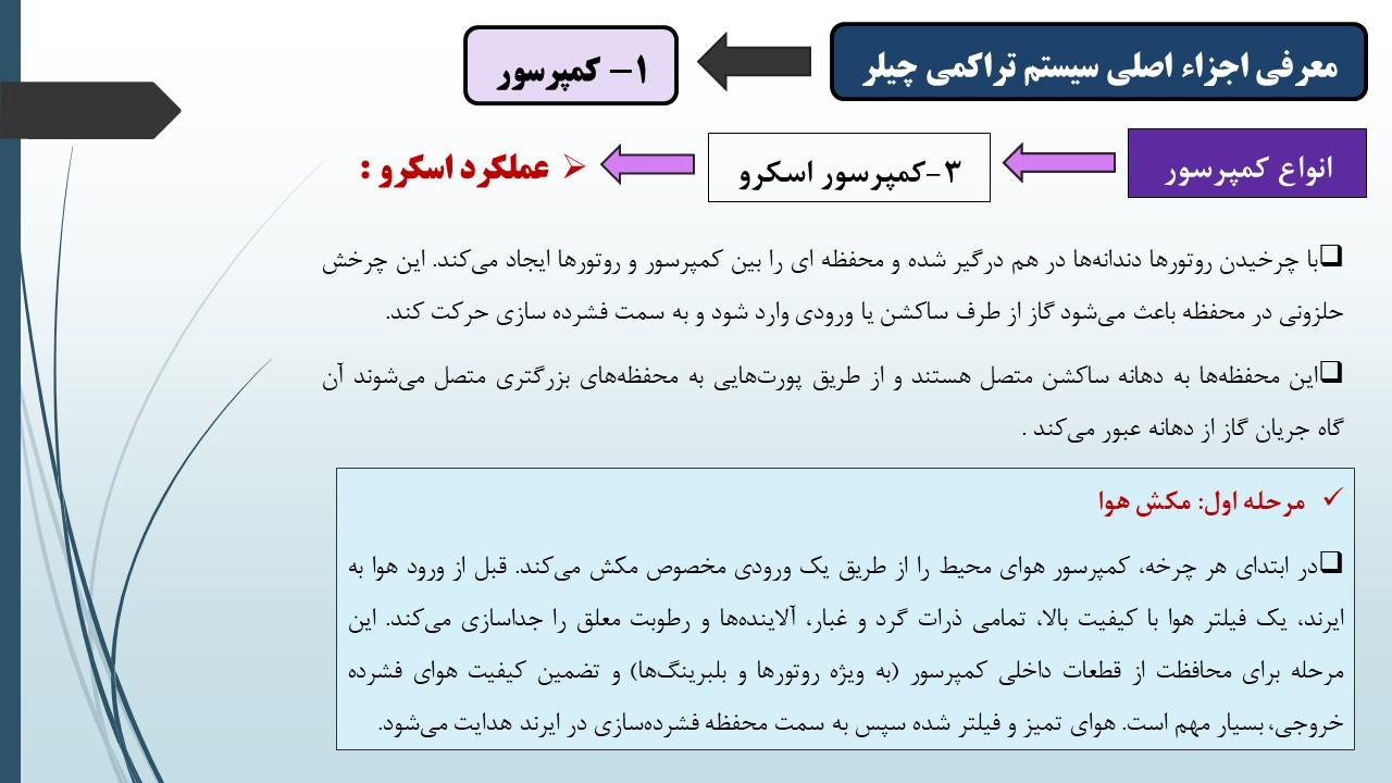 کمپرسور چیلر یکی از مهمترین اجزای سیستمهای سرمایشی است که نقش اصلی را در فشرده سازی مبرد و تأمین انرژی لازم برای چرخه تبرید ایفا میکند. این قطعه با افزایش فشار گاز مبرد، شرایط لازم را برای خنک سازی و انتقال حرارت در چیلر فراهم میسازد.