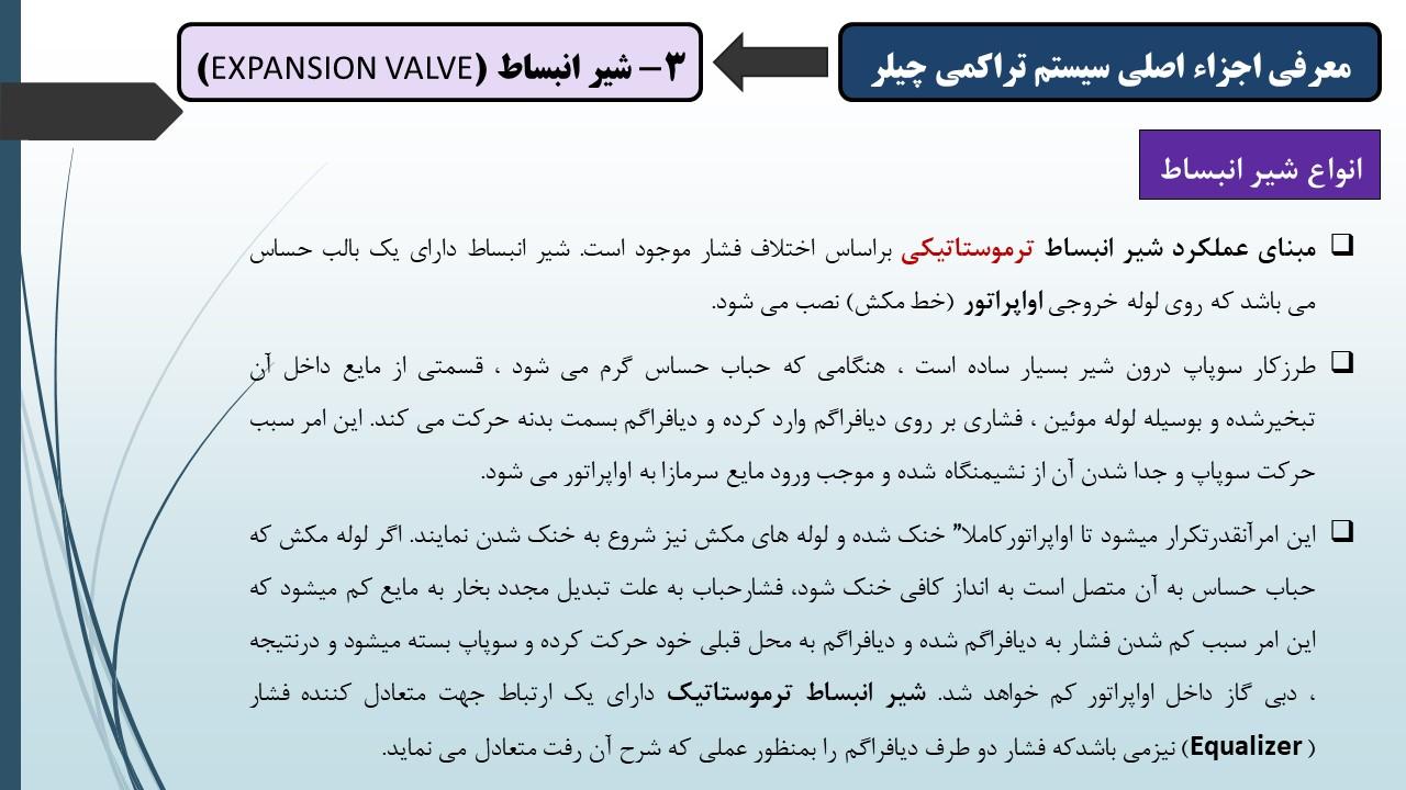 - كنترل دبي مايع ورودي به اواپراتور توسط دماي گاز خروجي از اواپراتور.