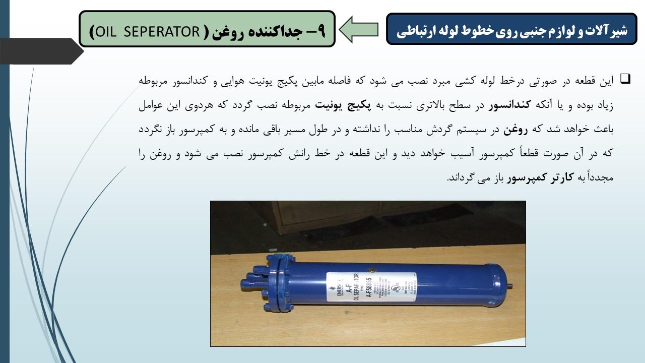 1- تجهیزات خط گاز : شامل تجهیزاتی هستند که در حد فاصل خروجیِ اواپراتور تا ورودیِ کندانسور قرار می گیرند