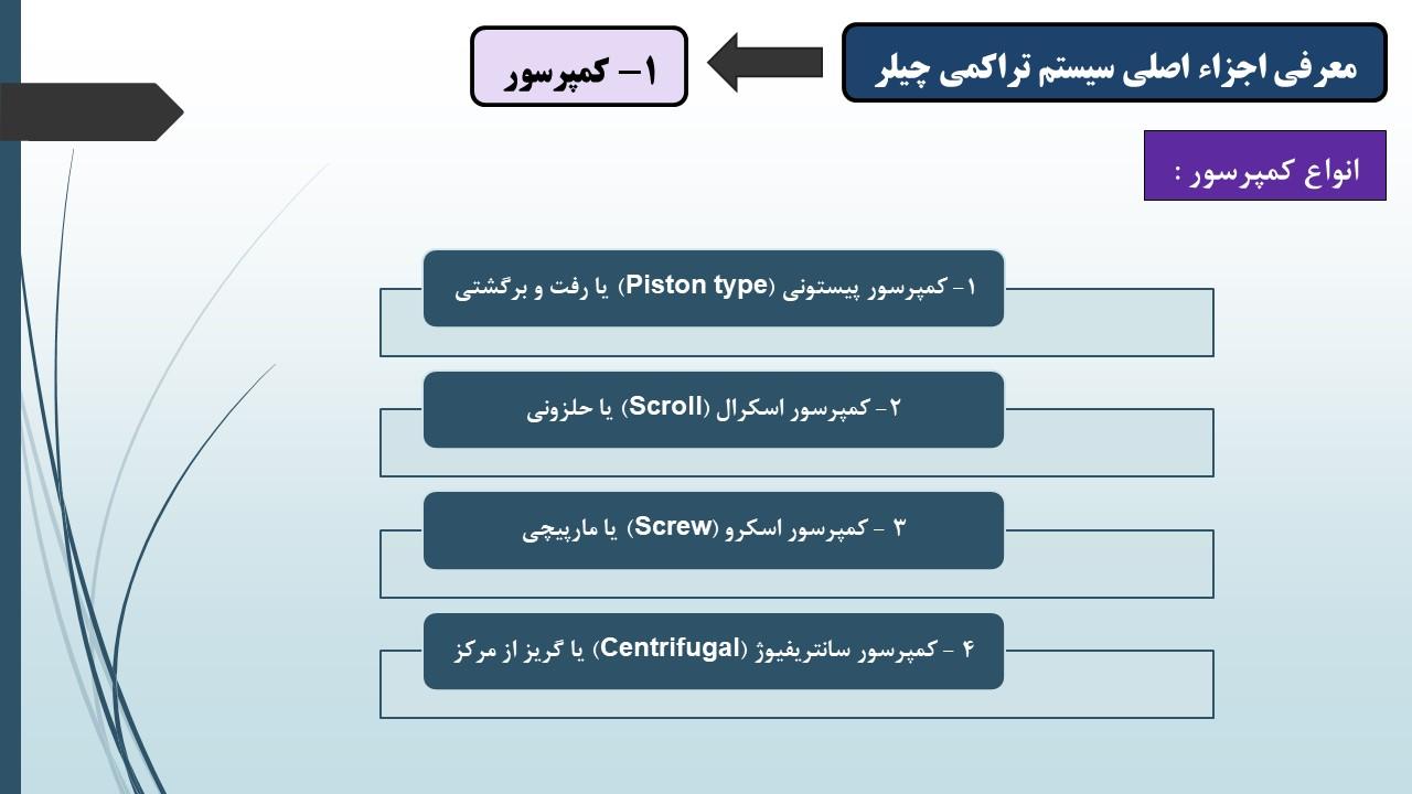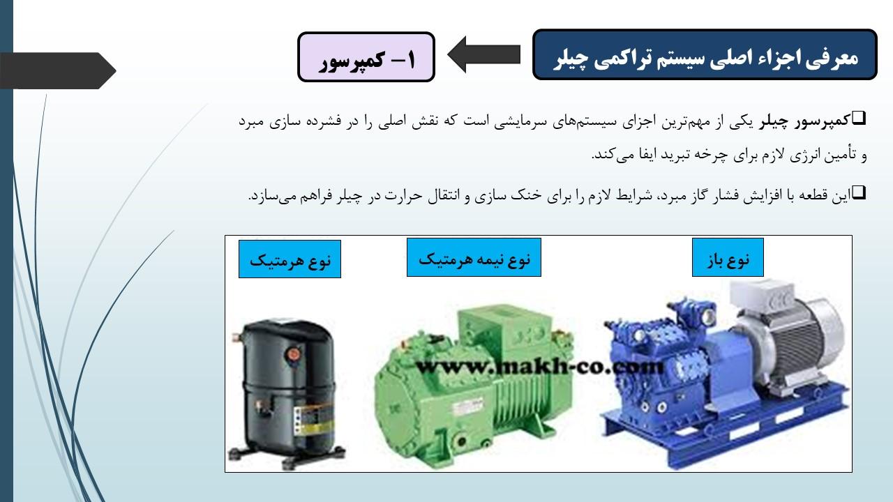- تجهیزات خط تبرید در چیلرهای تراکمی :