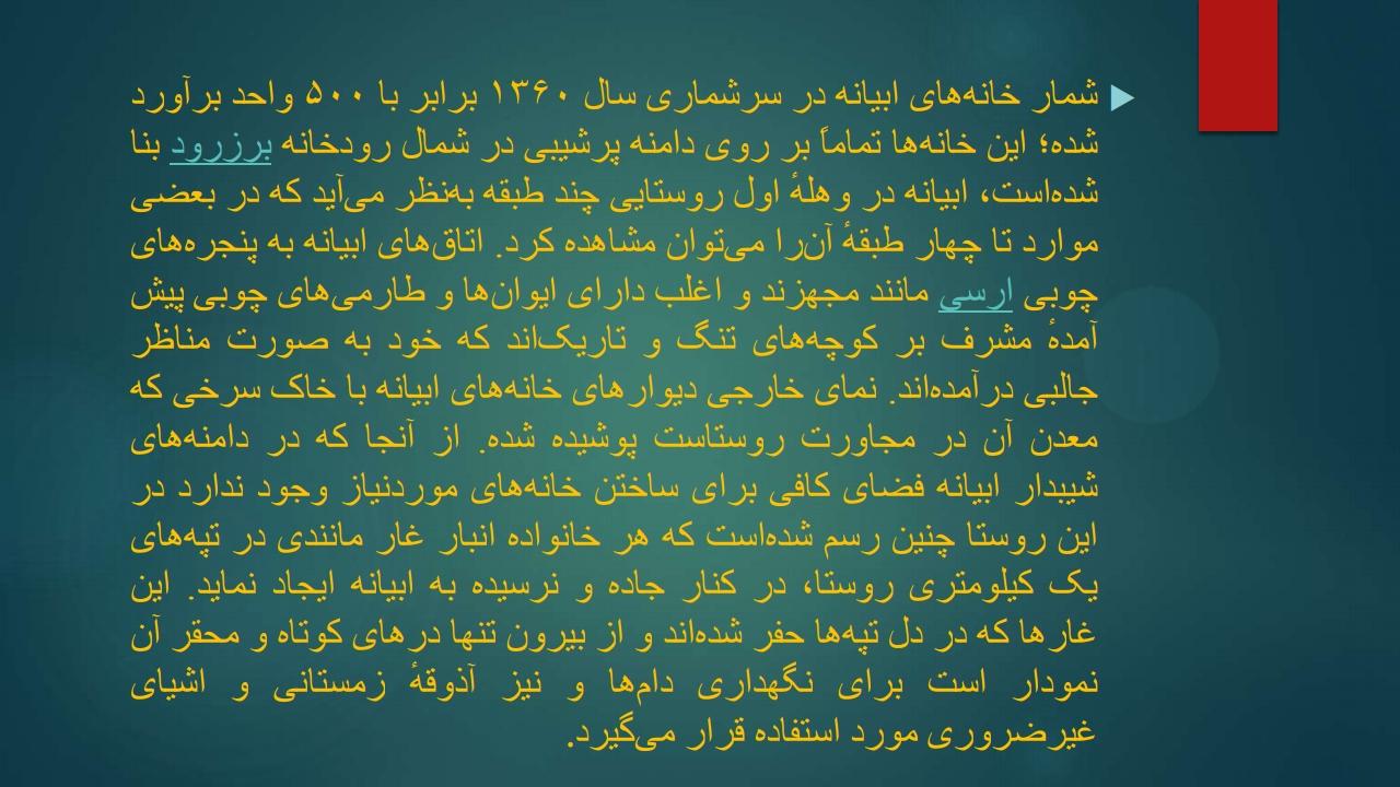 | برچسب ها | ابیانه, اتشکده ابیانه, خانه های ابیانه, معرفی ابیانه, معماری ابیانه, موقعیت ابیانه, پاورپوینت عمران, پاورپوینت معماری |