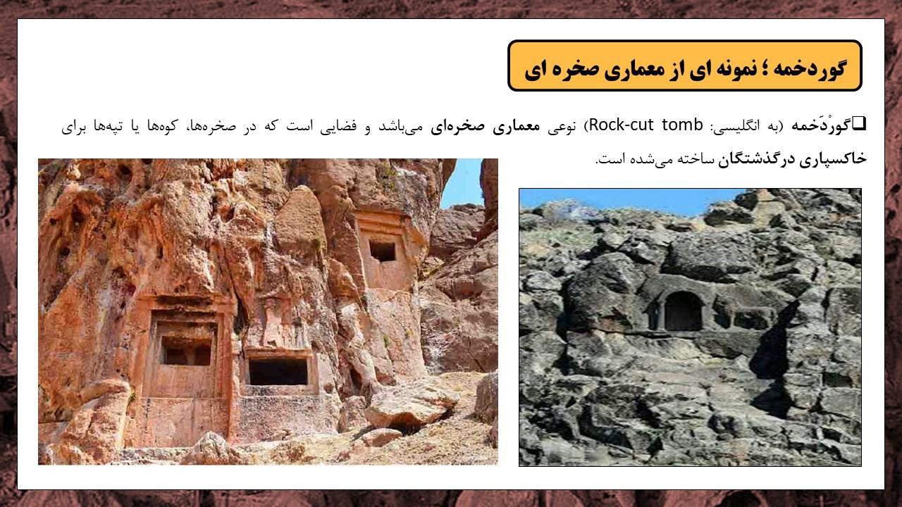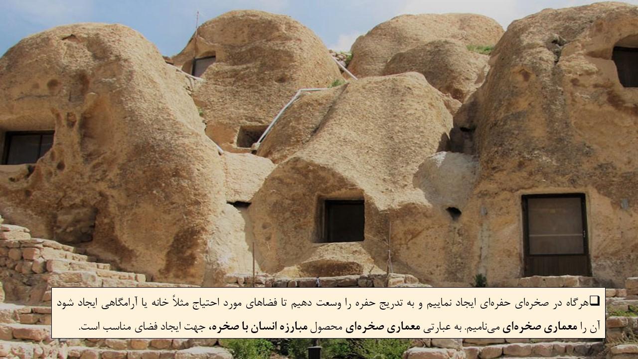در این بخش در ابتدا تعاریفی از معماری صخره ای ارائه شده است .