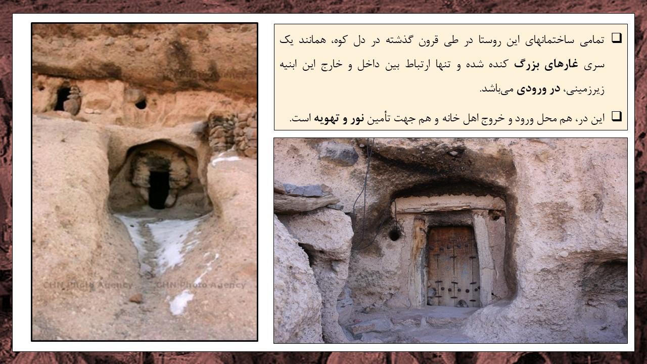 اين روستاي باستاني از معدود موارد معماري صخرهاي است كه به شكلي گسترده در تمامي ساختار روستا استفاده شده است.