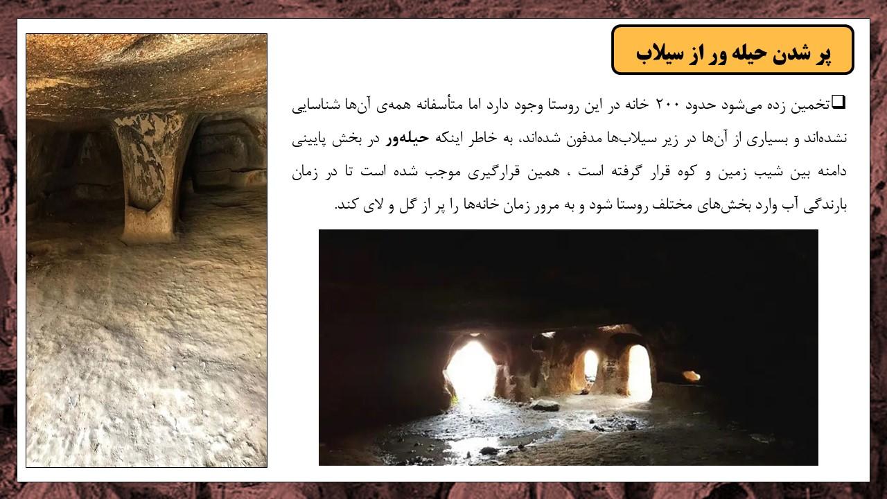 خانهها، از رویهم قرار دادن مصالح ساختمانی شکل نگرفتهاند. بلکه برعکس، برای درست کردن خانه، دل کوه را کندهاند و به آن شکل دادهاند تا به صورت اتاق دربیاید.