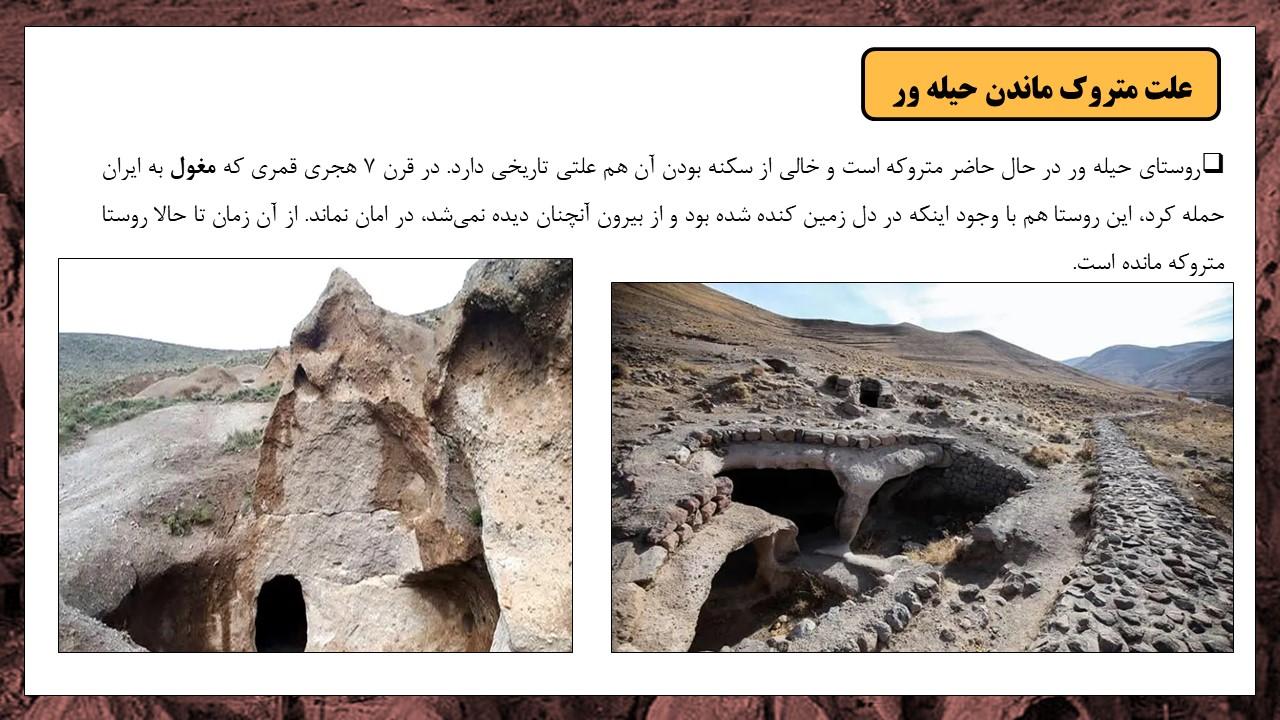 حیلهور روستایی است که در در دل زمین کنده شده و بهصورت زاغههایی دستکند و زیبا هستند. این خانهها در نگاه اول قابل دیدن نیست و برای همین استتار و مخفی بودن که شاید به خاطر پنهان بودن از دید دشمنان و بیگانگان اینگونه ساخته شدهاند، به حیلهور معروف شده است.
