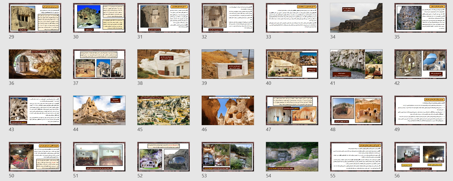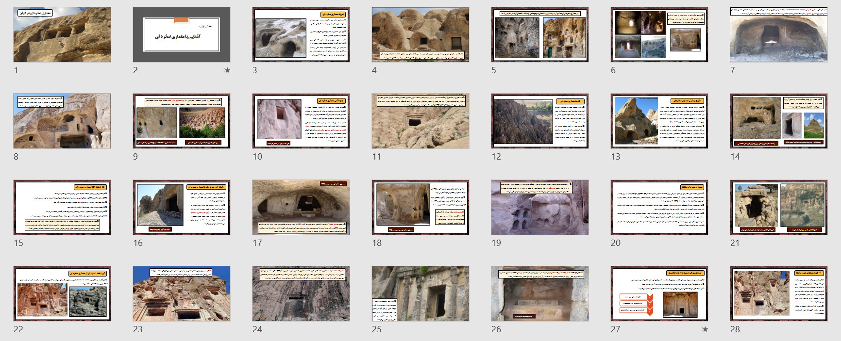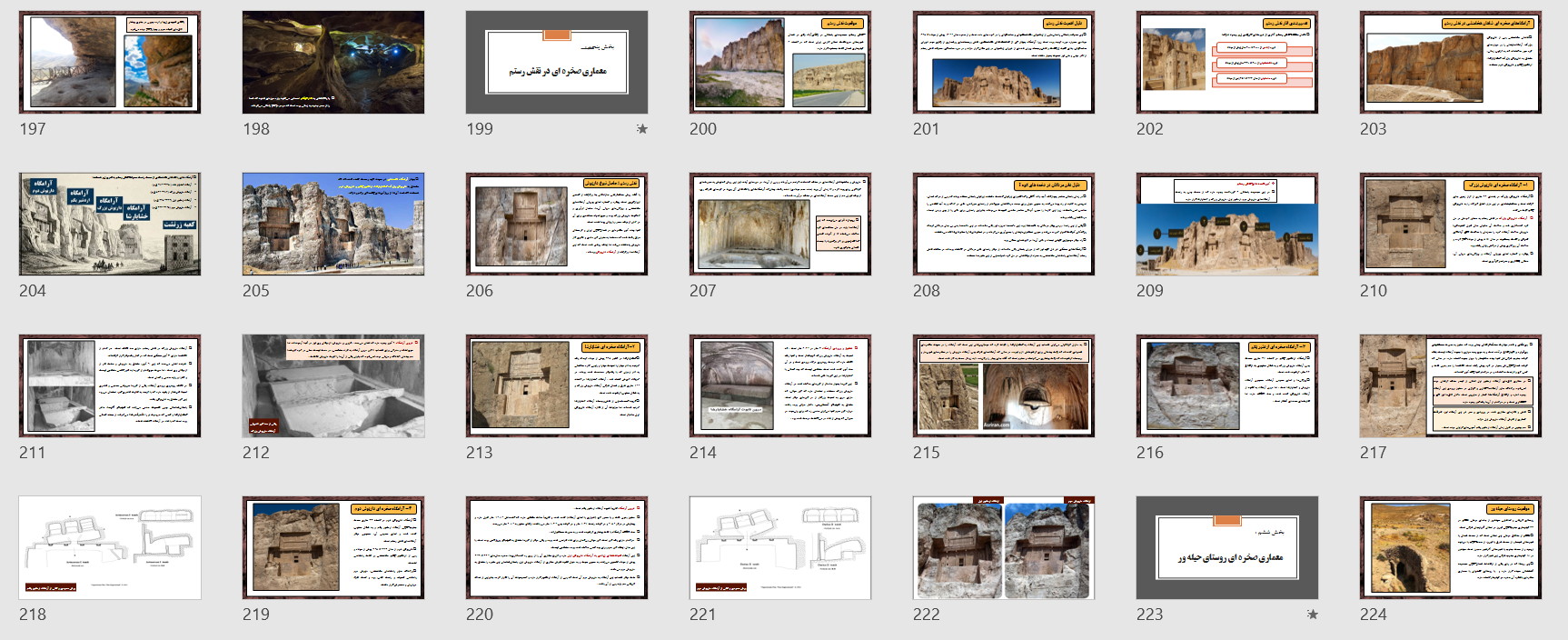 در این پاورپوینت بسیار بسیار کامل ، در هفت بخش و 307 اسلاید ، اطلاعات جامعی در مورد معماری صخره ای در ایران ارائه شده است .