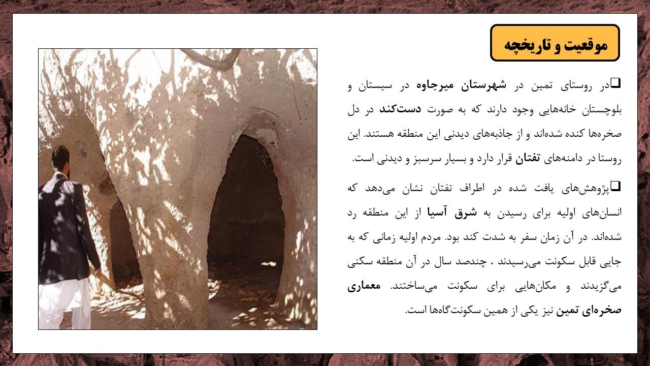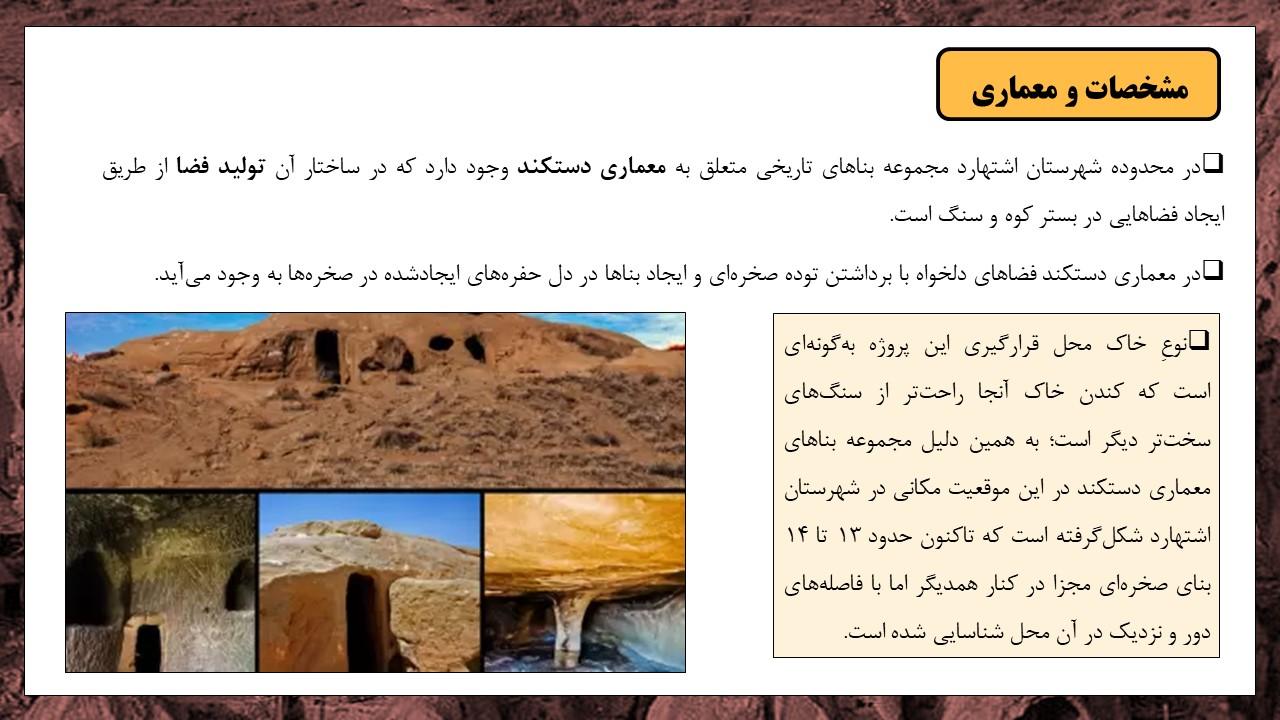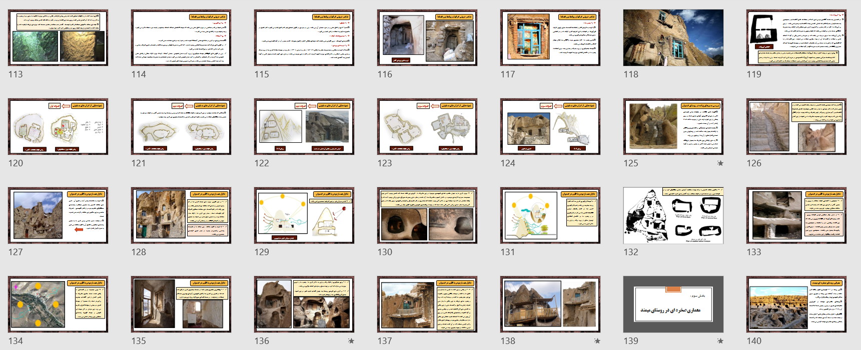 در این پاورپوینت بسیار بسیار کامل ، در هفت بخش و 307 اسلاید ، اطلاعات جامعی در مورد معماری صخره ای در ایران ارائه شده است .