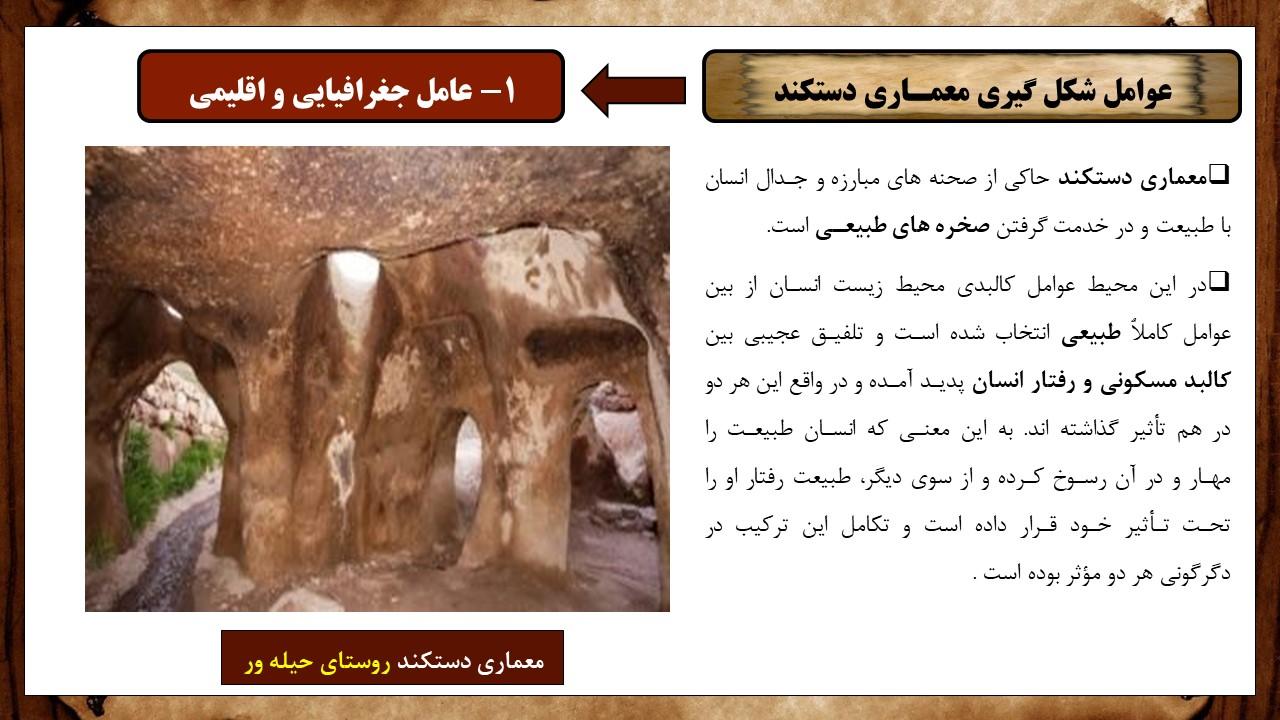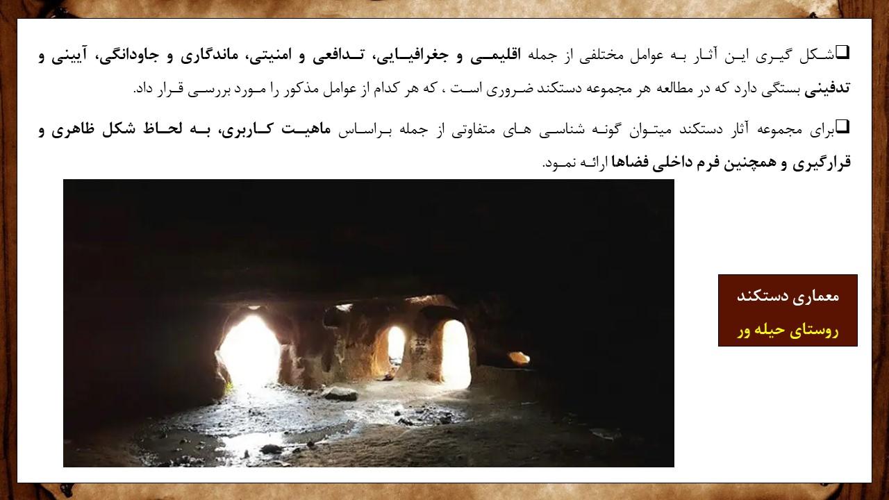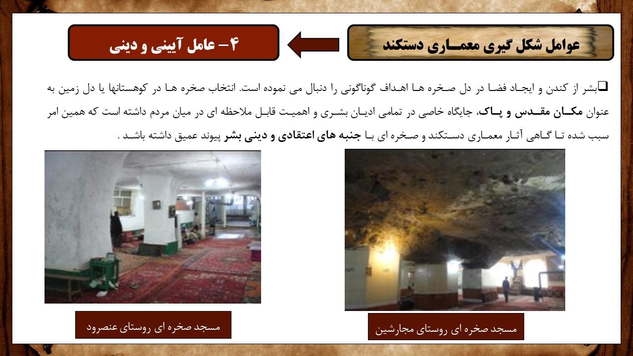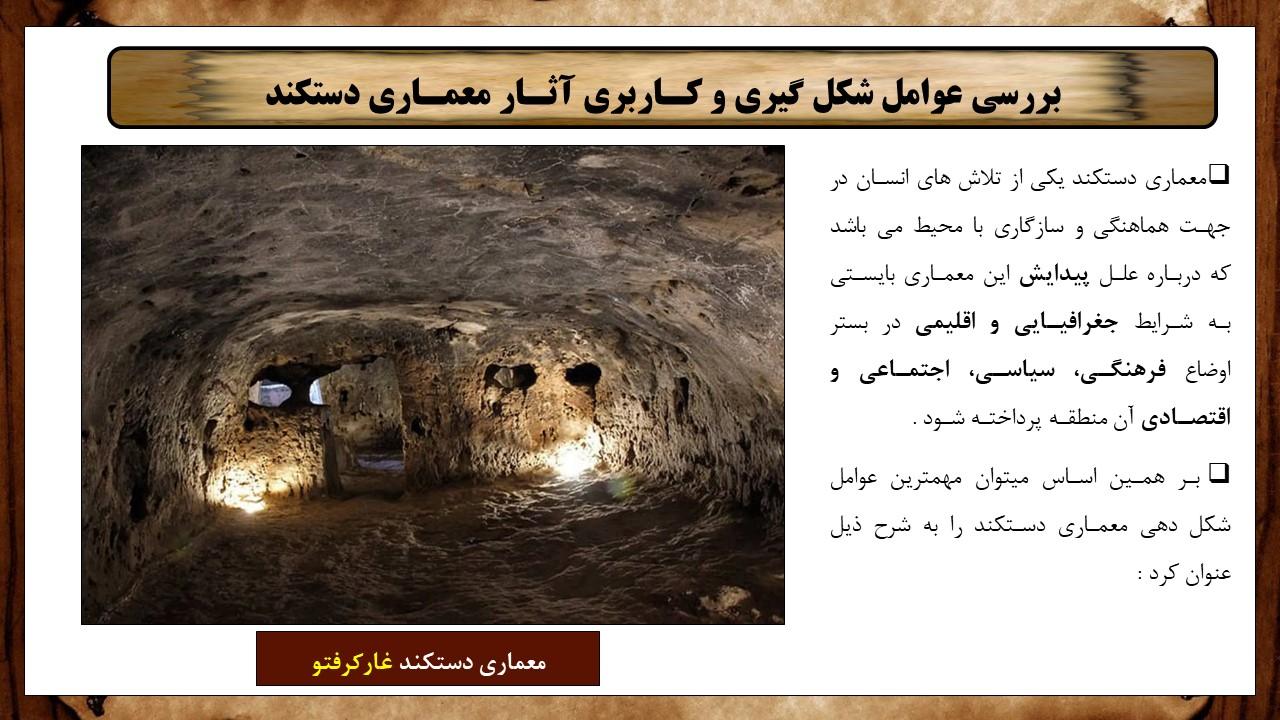 - عوامل شکل گیري و کـاربري آثـار معمـاري دستکند :