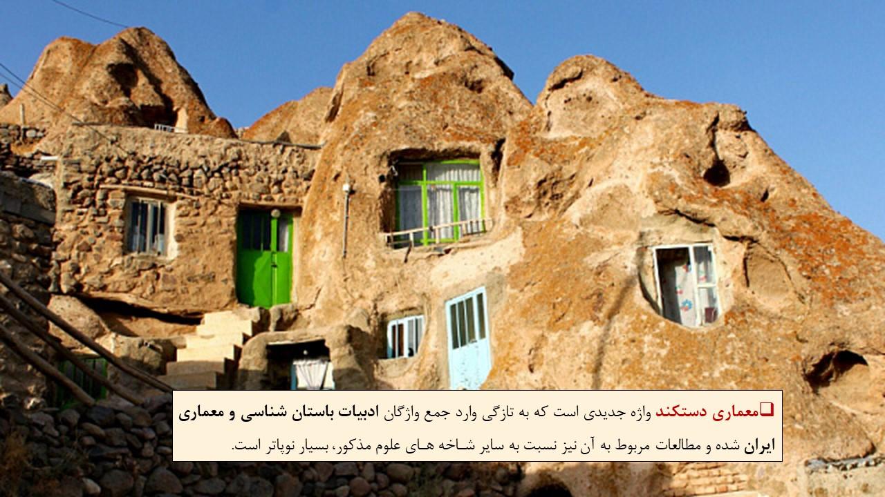 معماري دستکند واژه جدیدي است که به تازگی وارد جمع واژگان ادبیات باستان شناسی و معماري ایران شده و مطالعات مربوط به آن نیز نسبت به سایر شـاخه هـاي علوم مذکور، بسیار نوپاتر است.