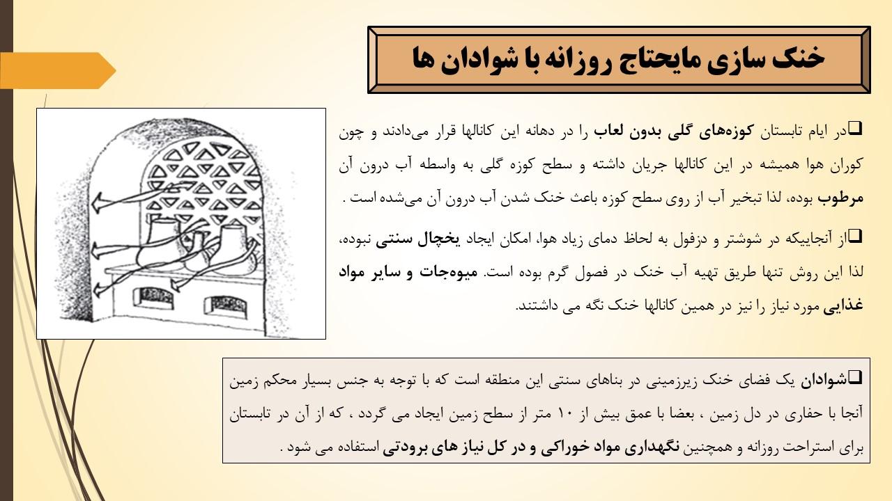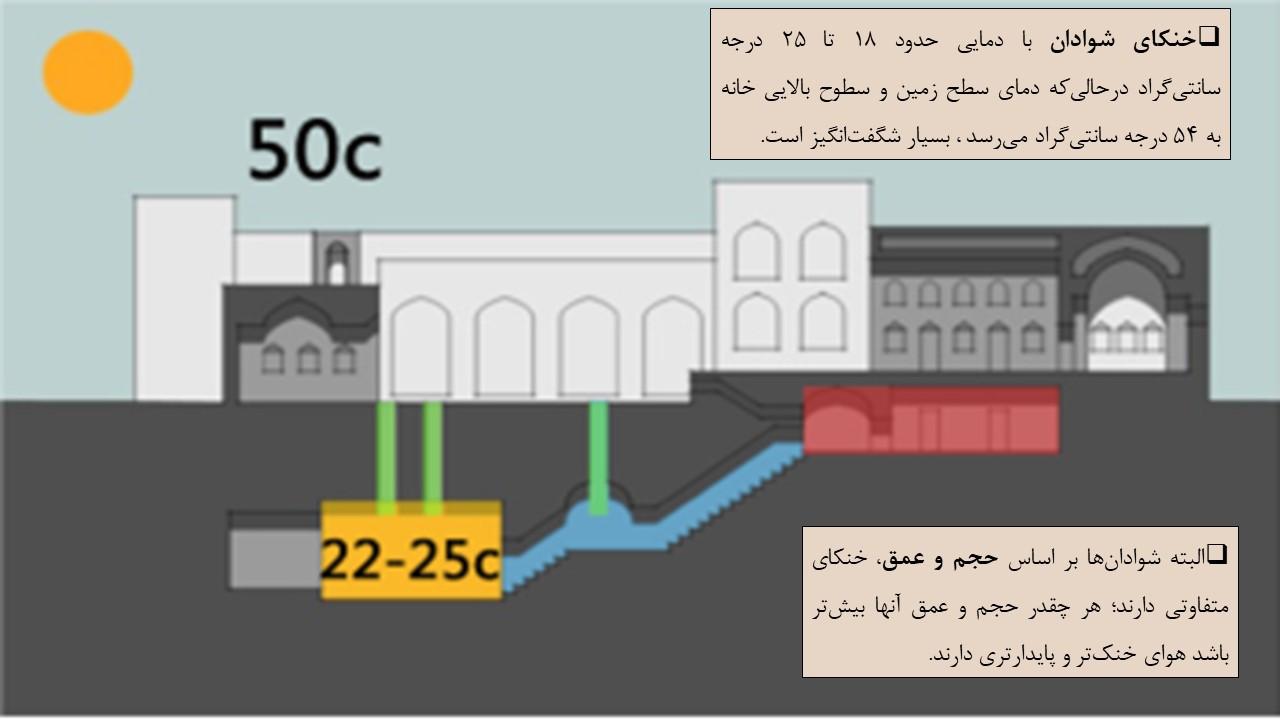 البته شوادانها بر اساس حجم و عمق، خنکای متفاوتی دارند؛ هر چقدر حجم و عمق آنها بیشتر باشد هوای خنکتر و پایدارتری دارند.