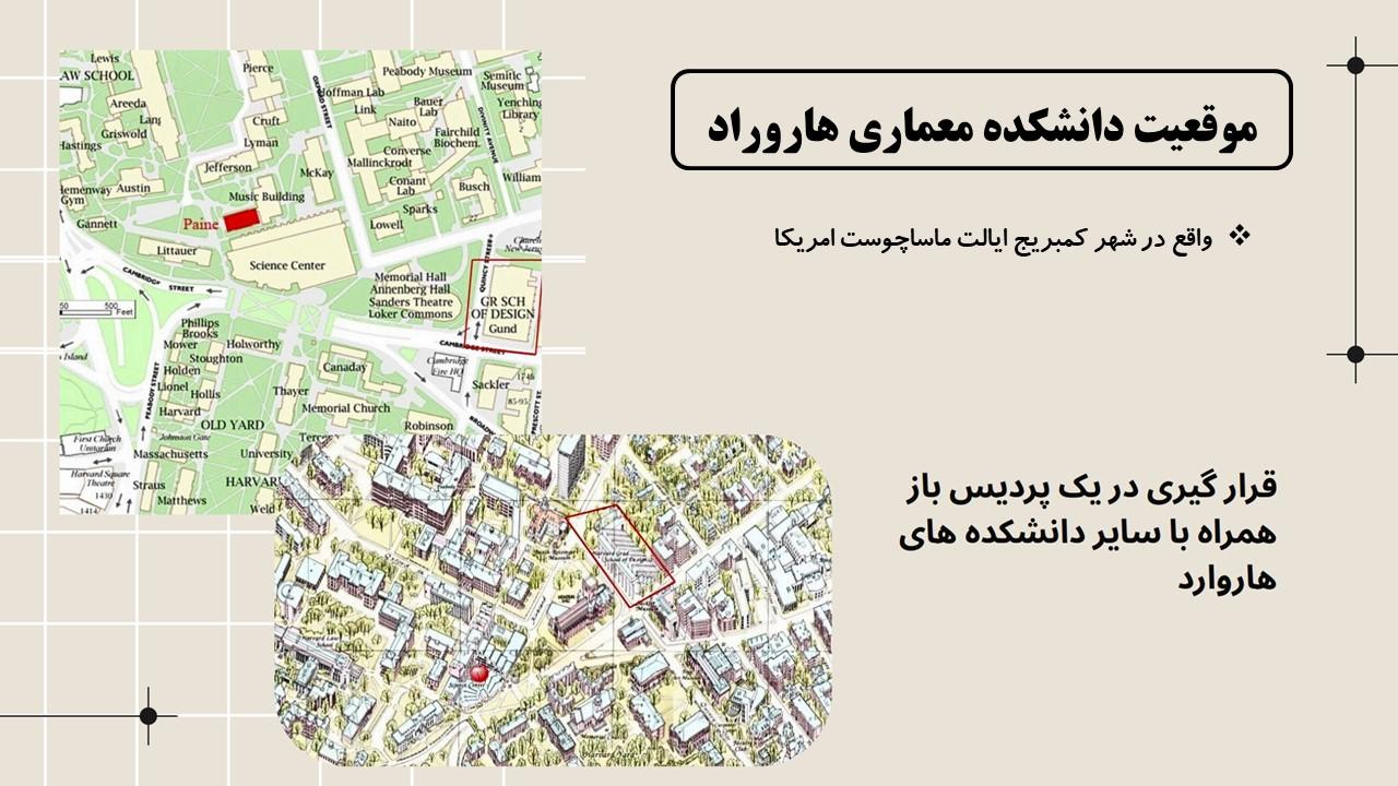 -دانشکده معماری هاروارد با معماری مدرن و کارکردگرا ، بیانگر نگاه آینده نگر و عقلانی به آموزش معماری در بستر غربی است .
