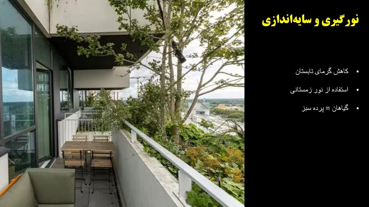 • بالکن‌های باز و سبز به‌عنوان فضای نیمه‌باز