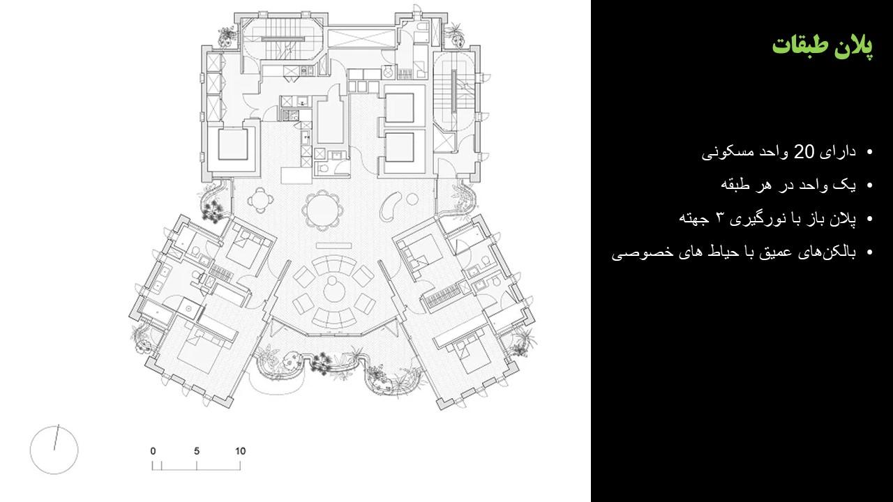 • 6-7 واحد مسکونی در هر طبقه با دسترسی به تراس سبز