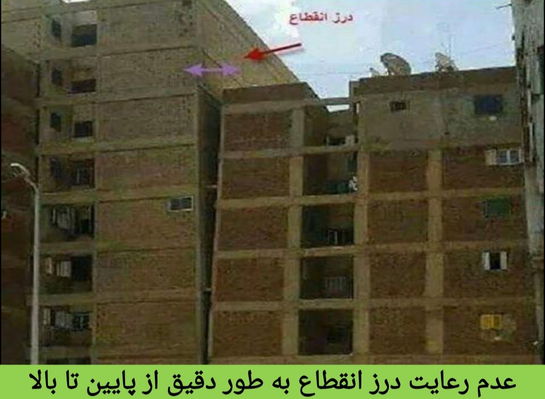 نمونه عواقب عدم رعایت درز انقطاع :