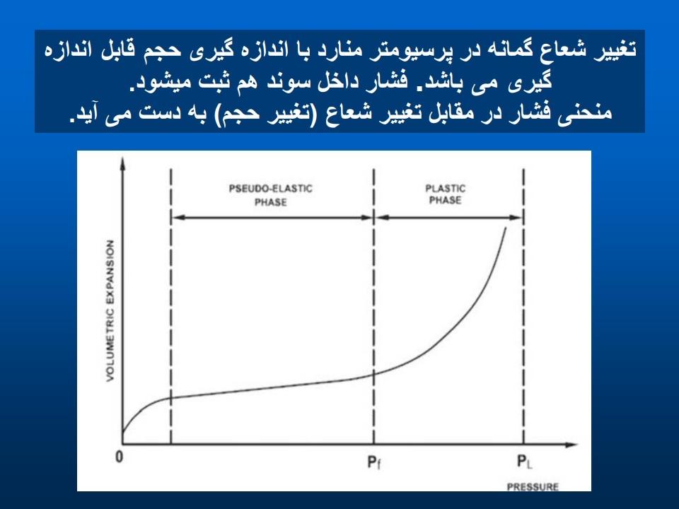 تغيير شعاع گمانه در پرسیومتر منارد با اندازه گیری حجم قابل اندازه گیری می باشد. فشار داخل سوند هم ثبت میشود.