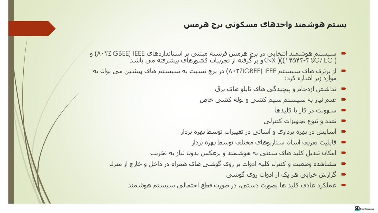 - سیستم هوشمند واحدهای مسکونی برج هرمس